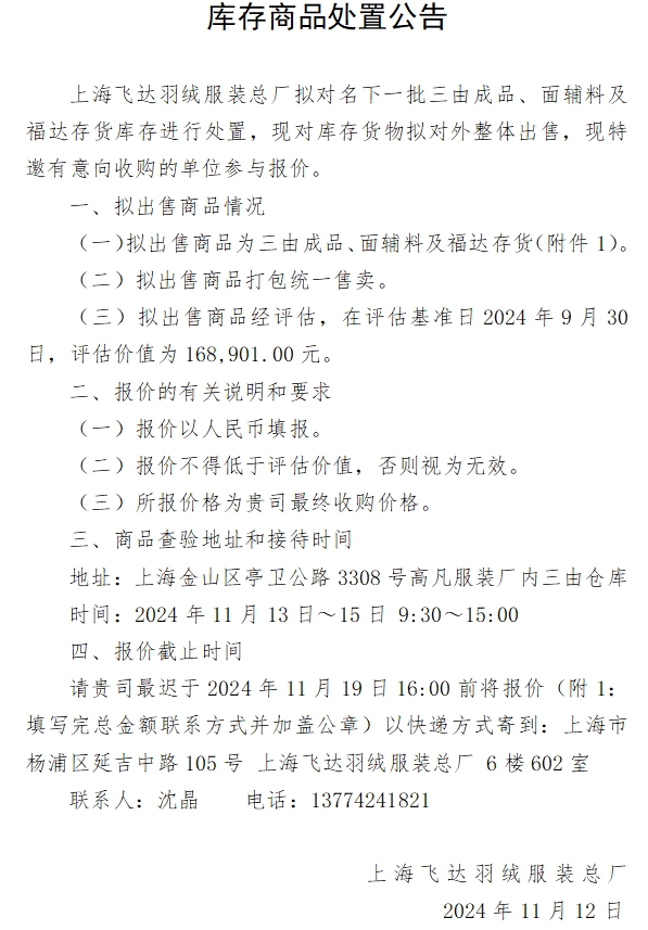 庫存商品處置公告